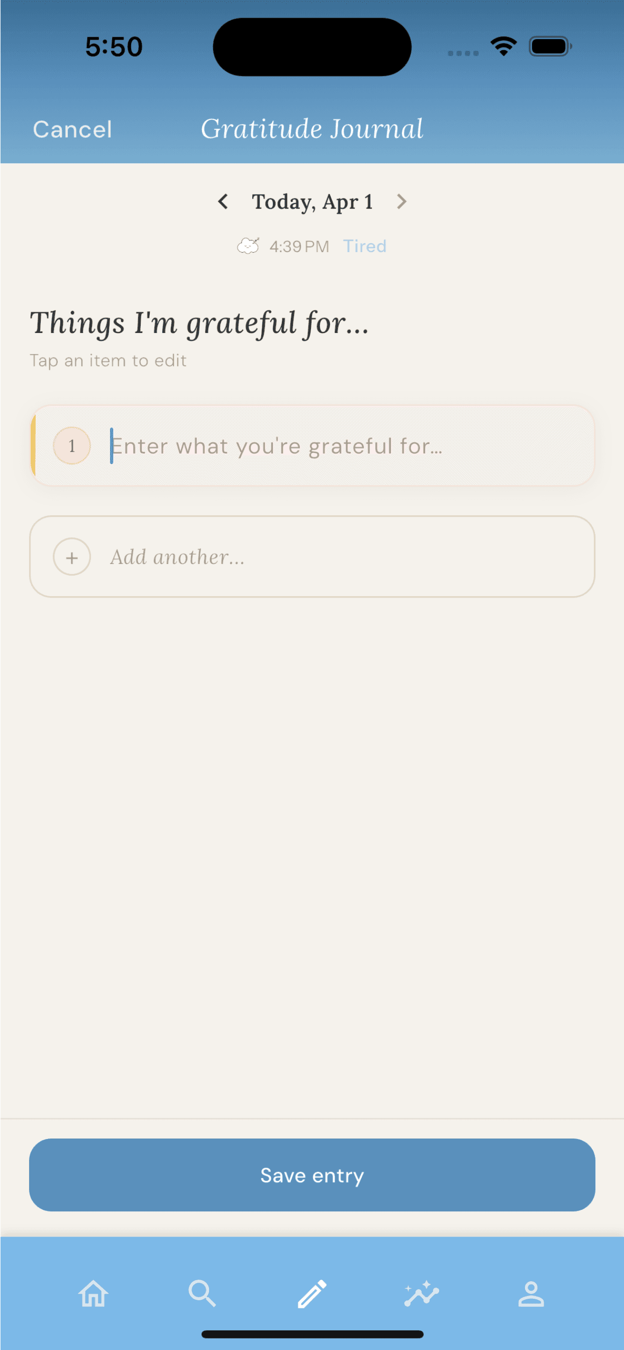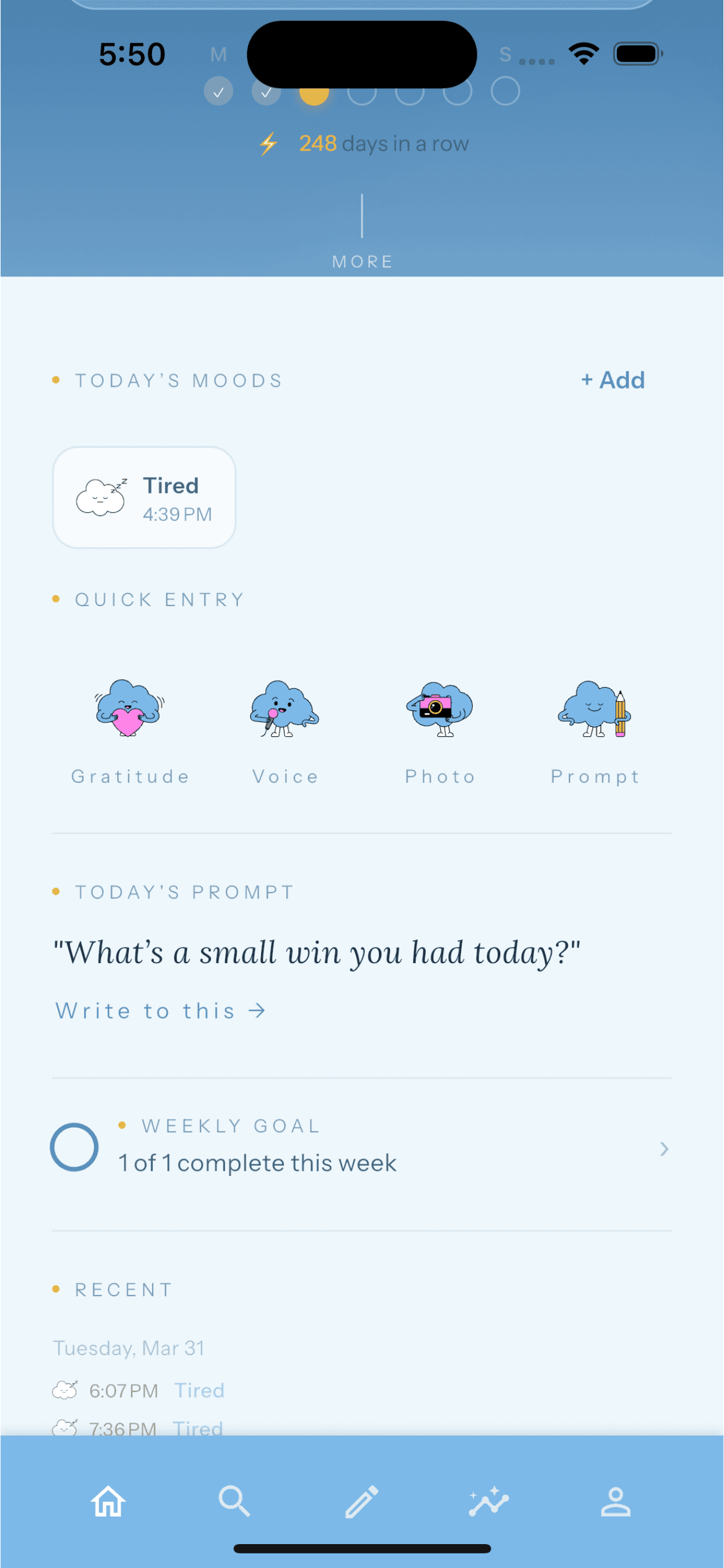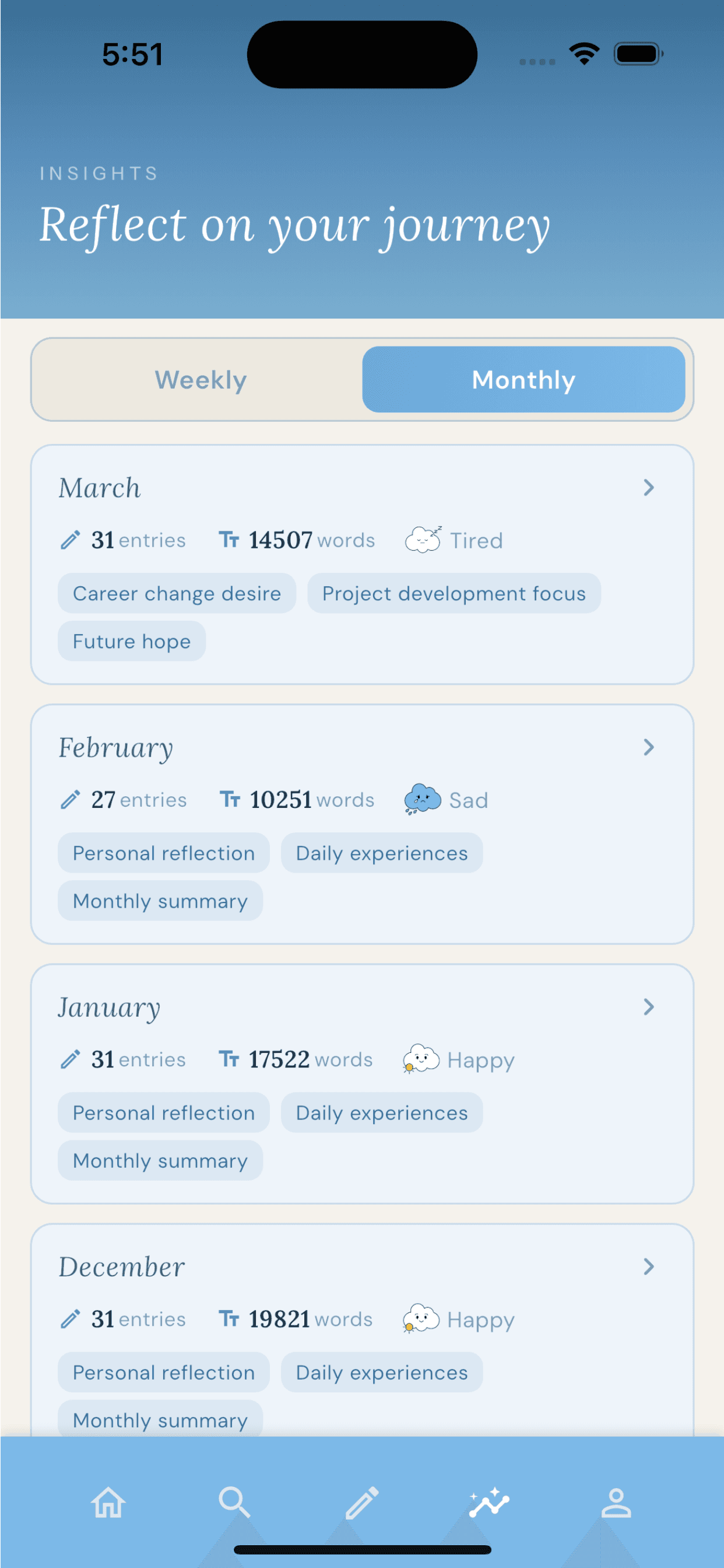 - View your emotional history in All Entries and Insights